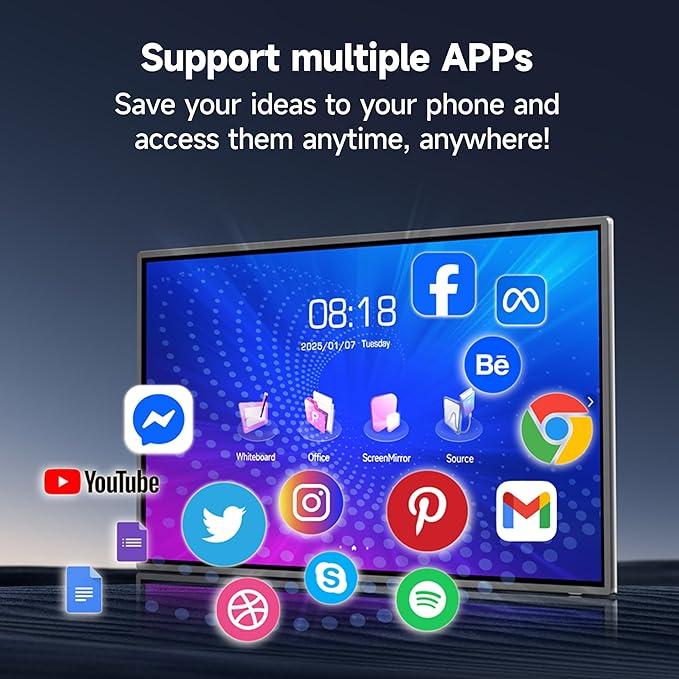 - 【4K Wireless Screen Mirroring 】Support true 4K wireless screen mirroring with one-click sync, zero latency, and broad device compatibility (no drivers needed). The smart board also switches freely between vertical and horizontal modes, adapting to home, classroom, or office needs effortlessly