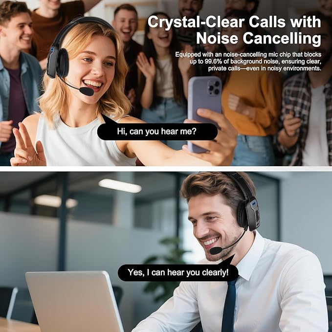 - Crystal Clear Calls with Rotatable Mic:Built-in adjustable microphone rotates for use on either ear, delivering clear, stable sound during phone calls—perfect for truckers, drivers, and office professionals.