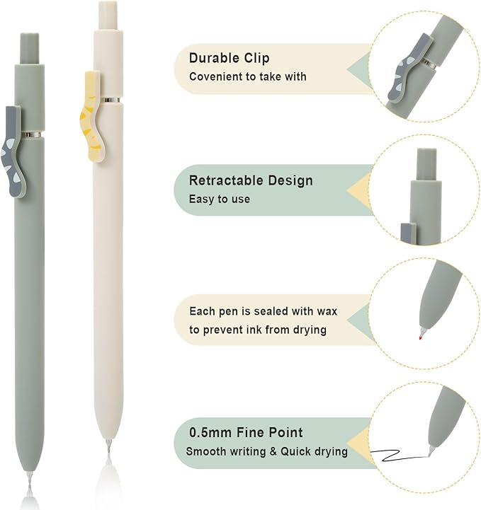 - Practical Pen Clip:Each aesthetic pen has a durable clip that lets you easily fasten it to a notebook, binder, or pocket