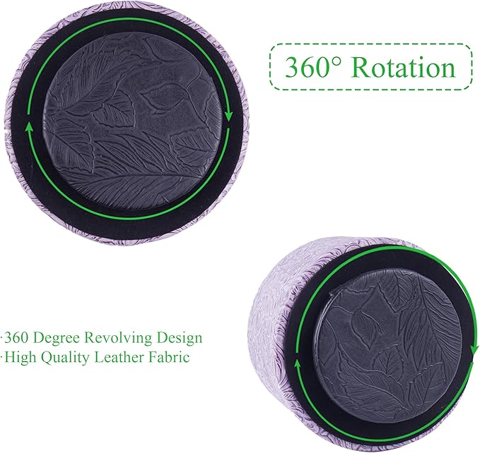 lizimandu Round Leather Art Supply Organizer,Remote Control Holder,360 Degree Spinning,Multi-Functional Pencil Holder,4 Compartments Desktop Stationary Organizer(1-Carved Puple)