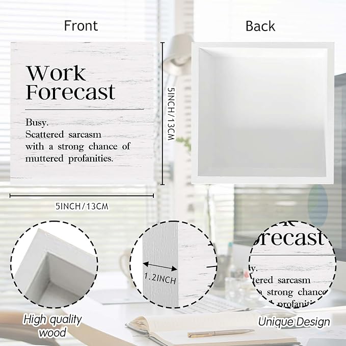 Funny Desk Decor Office Decor Sign for Work Cubicle Accessories Cool Things for Desk Work Office Gifts for Coworker Men Women Forecast Wood Sign - 5 x 5 Inches