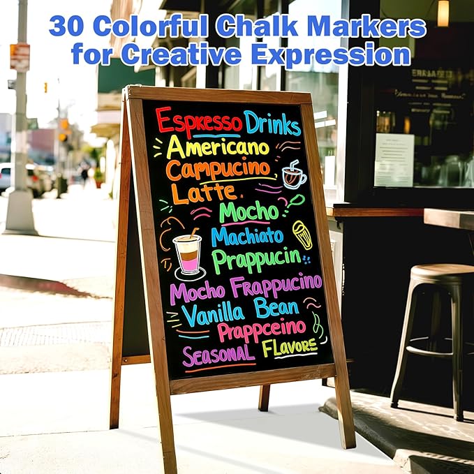 - 30 Colors Vibrant Liquid Chalk Markers - Liquid chalk markers comes with 24 vibrant colors and 6 metallic colors. Rich color selection, give full play to your artistic creation and make your art project more vivid