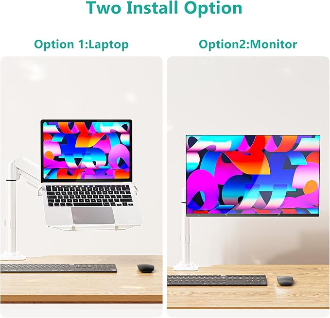 WALI Laptop Tray Desk Mount, Laptop Arm Mount Fits 10-15.6 Inch Notebook, 2-in-1 Gas Spring Monitor Arm for 17-32 Inch Computer Screen, Holds up to 22lbs(GSDM00LPW), White