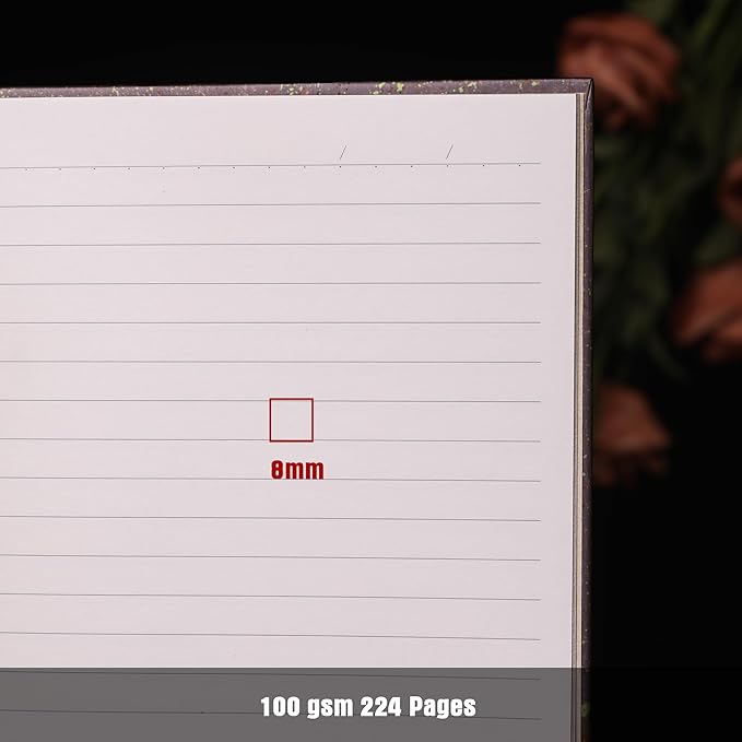 - 100GSM 224 Pages: Selected 100 gsm of high-density paper, thick and wear-resistant and strong anti-permeability, the back of no blotting trouble, long-lasting preservation of clear handwriting. 224 pages of ample space to carry daily inspiration, travel records or long-term journals for in-depth writing and creativity.