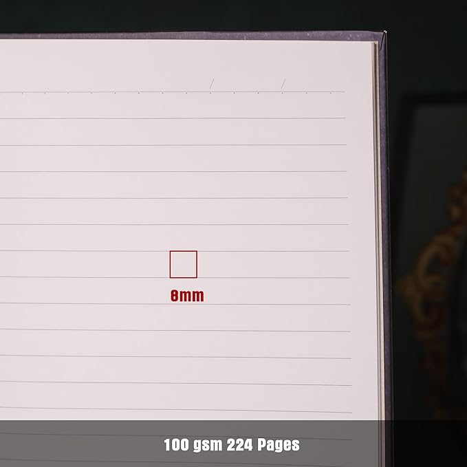 - 100GSM 224 Pages: Selected 100 gsm of high-density paper, thick and wear-resistant and strong anti-permeability, the back of no blotting trouble, long-lasting preservation of clear handwriting. 224 pages of ample space to carry daily inspiration, travel records or long-term journals for in-depth writing and creativity.