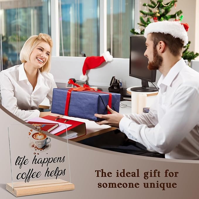 - Funny Coffee Lovers Gift: This "Coffee lover life happens coffee helps" acrylic plaque is a great humorous gift idea for coffee lovers