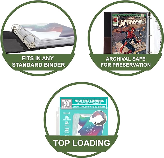Samsill High Capacity Sheet Protectors, 25 Pack, 8.5x11 Inch Page Protectors for 3 Ring Binder, Heavy Duty, Multi-Page Protector, Holds 50 Sheets, Top Loading, Acid Free