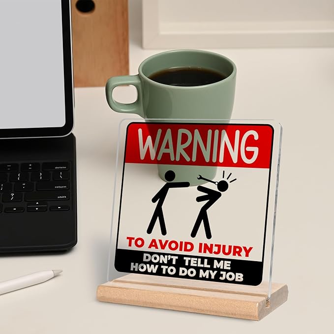 - Funny Gift: This "Warning to avoid injury don't tell me how to do my job" acrylic plaque is a great humorous gift idea for work men women, boss, leader, coworker, manager and mentor.