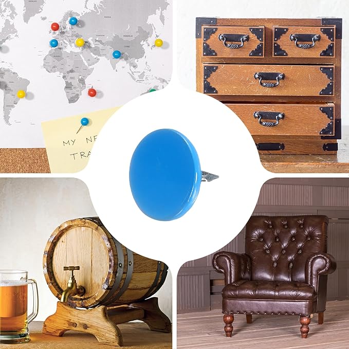 - [Wide Application] - The thumb tacks are both practical and decorative and can be used in a variety of furniture and DIY craft projects. Widely used to decorate furniture such as upholstery, sofas, headboards, chairs, benches, stools, wooden boxes, and can also be used to fix memos, pictures, maps and other lightweight items on cork boards