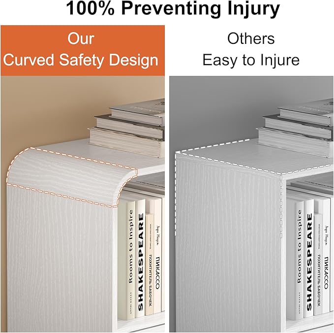 - Modern Minimalist & Safe Design: This wooden bookshelf adopts sleek lines and rounded corners for a modern minimalist aesthetic. Whether in your study, home office, or reading corner, this bookshelf blends seamlessly with any decor, adding a touch of elegance while ensuring safety with its smooth, child and pet-friendly edges.