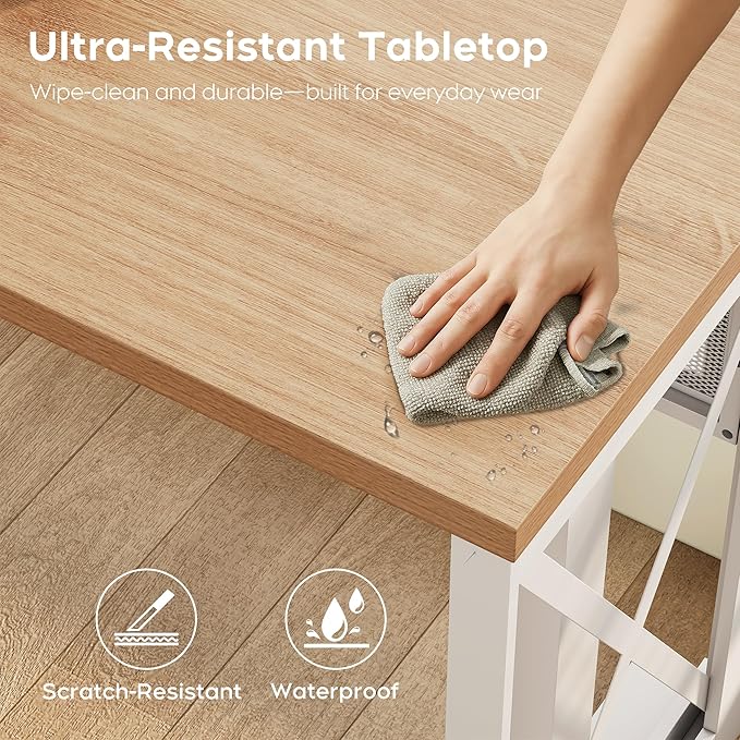- [Reinforced Wooden Desktop] Tired of flimsy metal desktops that warp and bend and coffee spills, tangled cables? Our office desk features a 30mm solid wood surface with a 220lb load capacity - sturdy enough for triple monitors and a PC tower, with zero wobble during intense work or gaming sessions. Also the wooden desktop features a durable coated surface that resists both scratches and water-resistant.