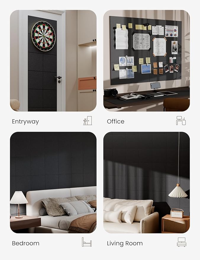- 【Felt Bulletin Board – 12 Tiles Included】 Includes 12 felt cork boards (each 11.8" x 11.8") with 30 Pushpins that can be freely arranged into a large display board. Perfect for showcasing your schedules, ideas, and creations in home or office settings.