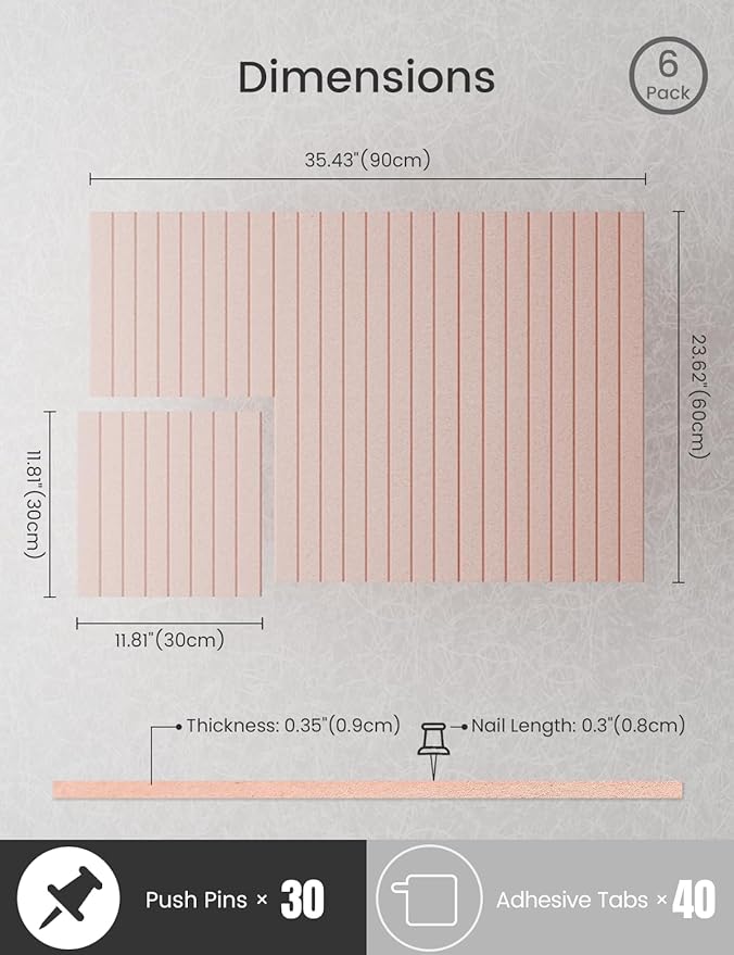 - 【Felt Bulletin Board – 6 Tiles Included】 Includes 6 felt cork boards (each 11.8" x 11.8") with 30 Pushpins that can be freely arranged into a large display board. Perfect for showcasing your schedules, ideas, and creations in home or office settings.