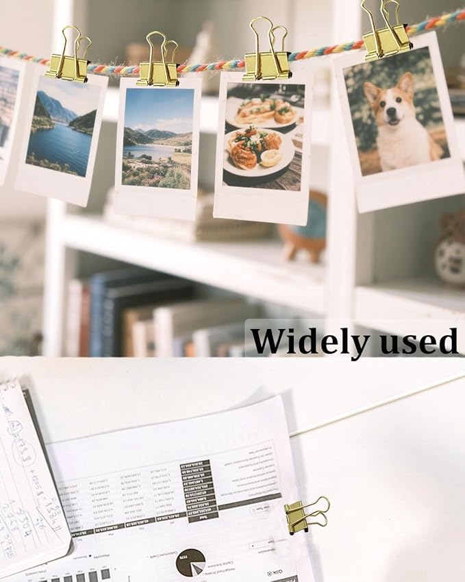 Assorted Binder Clips 0.75/1/1.25in 25-Pack -Gold Tone Clips for Office & Home