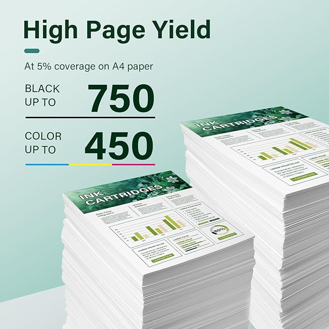 - High Page Yield: It yields up to 750 pages for each 62XL 62 Black Ink and 450 pages for each 62XL 62 tricolor high yield ink cartridges at 5% coverage (A4e letter)