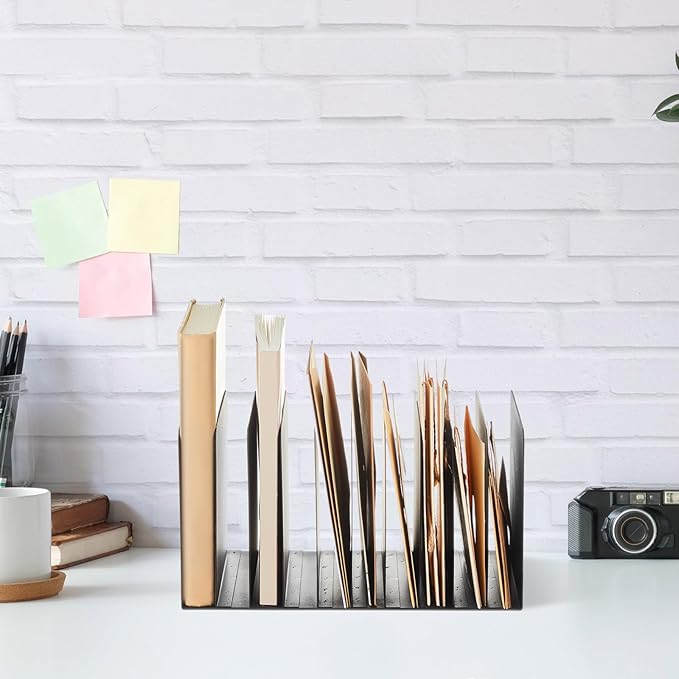 - Large Capacity: with dimensions of approximately 5.79 x 10.63 x 5.41 inches, this 10 compartments metal file organizer is designed for file storage; A single compartment is 1.95 inch, suitable for A5, B5 file, using it you can put documents within reach