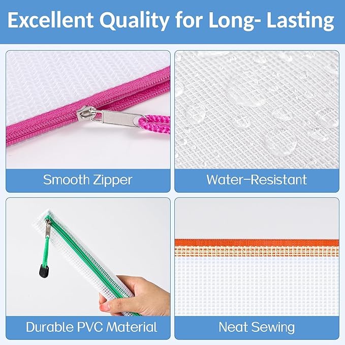- What You'll Get: 24 pack mesh zipper pouch bags, A3 size, 11.7×16.5 inches, 8 assorted colors (each color with 3). Perfect for pencils, markers, crayons and small toys.