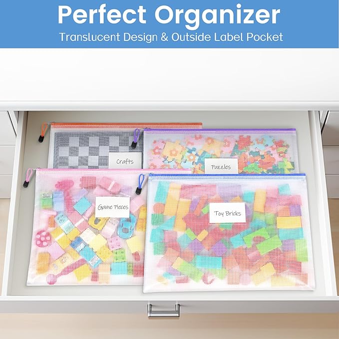 - Endless Uses Mesh Bags: Nice tools for keeping your life well-organized. These storage bags are versatile and suitable for organizing not only cash and receipts school & office supplies, crafting and sewing projects. Indispensable for travel and can also be used for cosmetics.