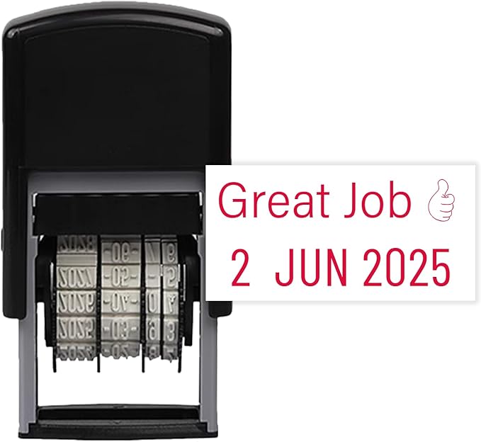 - Personalized Compact Date Stamp for Business: Self inking office date stamps are made of premium rubber, super sturdy and durable. Date stamps come ready-to-use with your custom text printed. 12 years bands guaranteeing over 10 years of usage. By rotating the wheels smoothly to set your desired date. Compact cute design comfortably fit in your pocket to anywhere. Customizable Impression Area: 0.2"(5 mm)* 1"(25 mm).