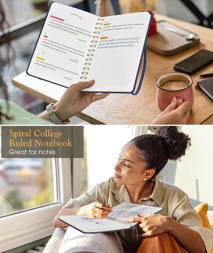Dotted Spiral Journal Notebook, A5 Hardcover Spiral Journals for Women Men, 100 GSM Dot Grid Paper Notebooks, 150 Pages Spiral Bullet Dotted Notebook for Writing Note Taking 5.75" x 8.38", Navy Blue