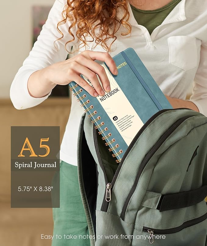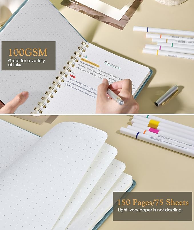 Dotted Spiral Journal Notebook, A5 Hardcover Spiral Journals for Women Men, 100 GSM Dot Grid Paper Notebooks, 150 Pages Spiral Bullet Dotted Notebook for Writing Note Taking 5.75" x 8.38", Misty Blue