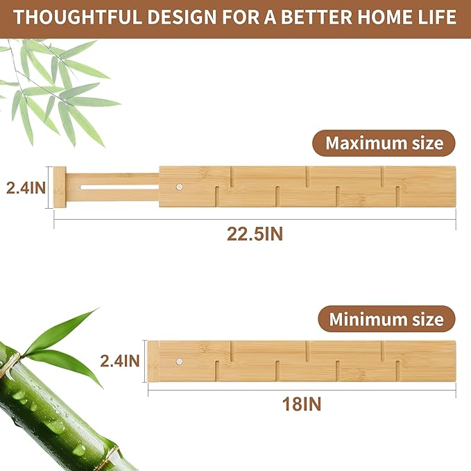 - PREMIUM BAMBOO CONSTRUCTION:Made from high-quality bamboo, these drawer dividers are sturdy, and feature a smooth, natural finish that complements any drawer interior.