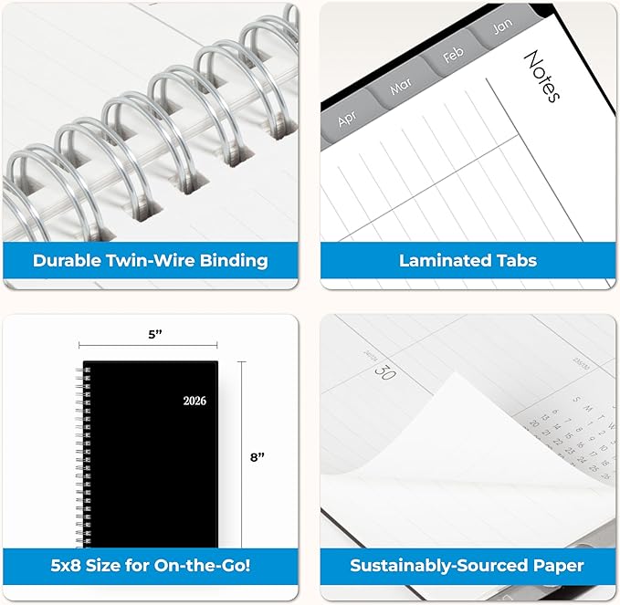 - [BUILT TO LAST] Designed with a flexible cover and premium pages that endure daily use while maintaining a sleek, professional look. Printed on quality FSC-certified paper with convenient laminated tabs that are durable enough to handle constant use throughout the year