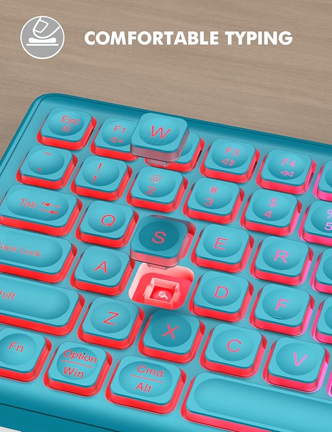 - COMFORTABLE TYPING & SILENT CLICK - The foldable stands offer a tilt angle for a better typing position. The effortless crater mechanism under each key makes typing more comfortable. The mouse and keyboard are almost silent, don't worry about disturbing others.