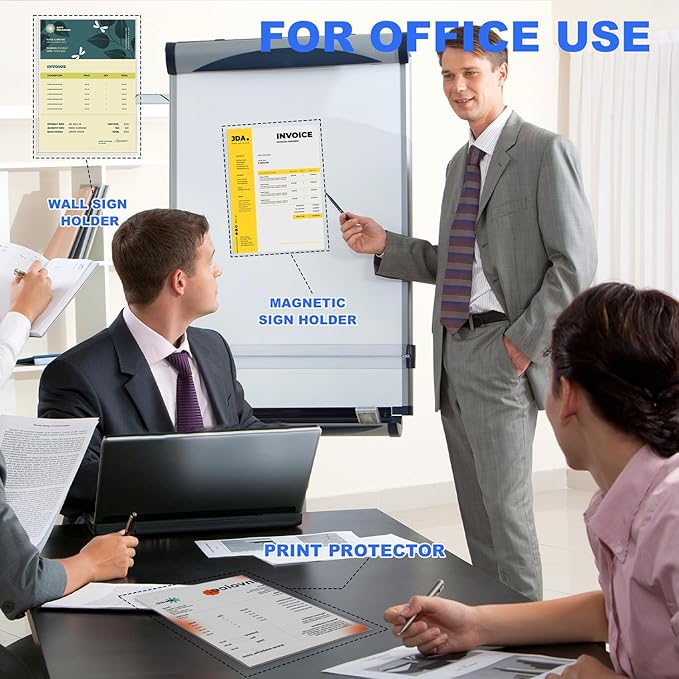 - [USED WIDELY]: The magnetic document holder offers wide-ranging use, Suitable for diverse settings—offices, restaurants, homes, libraries, stores, schools, and public spaces like elevators—It supports horizontal/vertical display, ideal for showcasing menus, announcements, artwork, certificates, recipes, or product info.