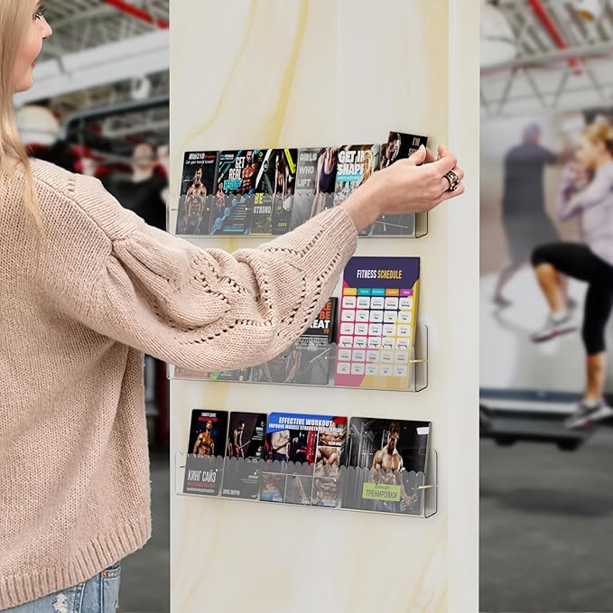 - šćMultipurpose Widely UsećLaumffon brochure holder wall mount perfect for displaying menus, drink specials, important announcements, photos, brochures and pamphlets. It can be used in restaurants, trade shows, exhibition, hospitals and any other locations where you want to display your brochures or childbooks.