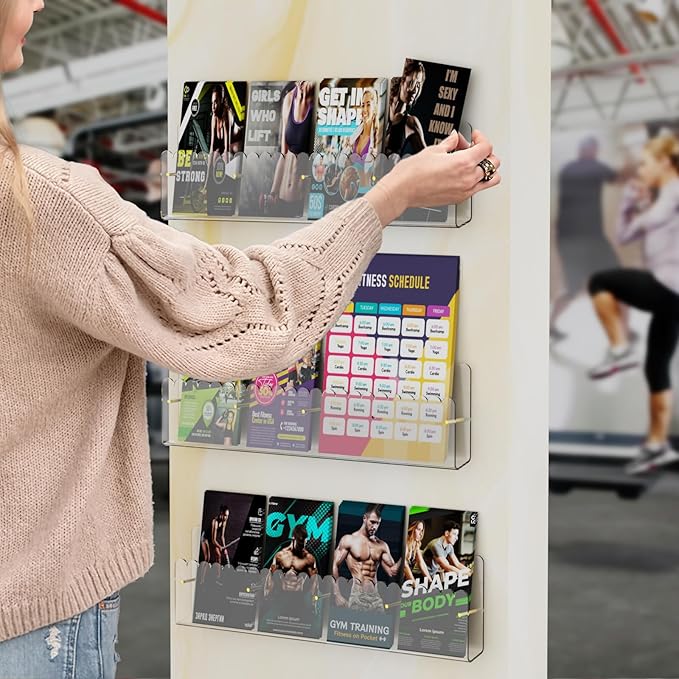- šćMultipurpose Widely UsećLaumffon brochure holder wall mount perfect for displaying menus, drink specials, important announcements, photos, brochures and pamphlets. It can be used in restaurants, trade shows, exhibition, hospitals and any other locations where you want to display your brochures or childbooks.