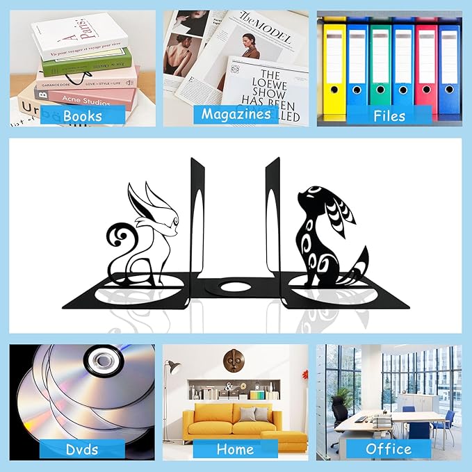 - Versatile Use: Apart from organizing your books, our cute bookends are also perfect for displaying DVDs, magazines, or other media collections. They are suitable for your living room, office, library, or even a child's room. It is also a great bookish gift for your friends, classmates and co-workers for special occasions