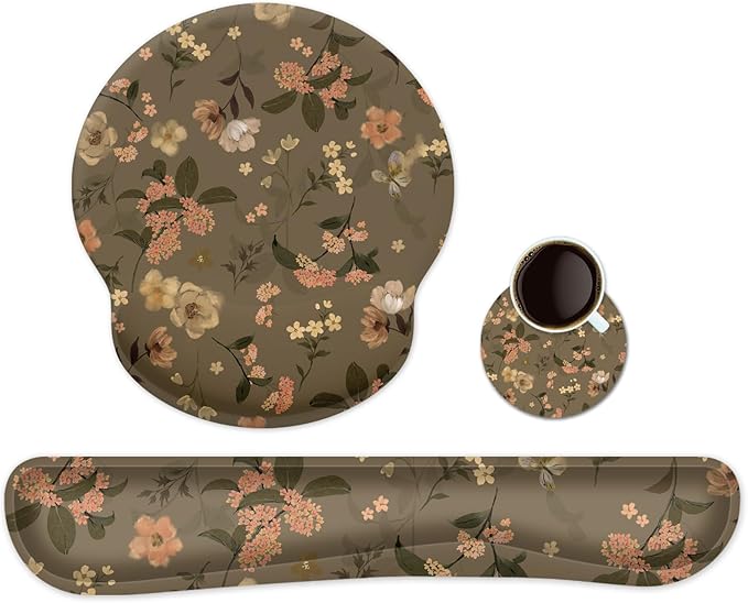 Ergonomic Keyboard Mouse Pad Wrist Rest Support Set for Laptop/Computer/Desktop,Memory Foam Hand Rest Wrist Cushion for Gaming/Office,Lightweight Comfortable & Pain Relief (Flowers)
