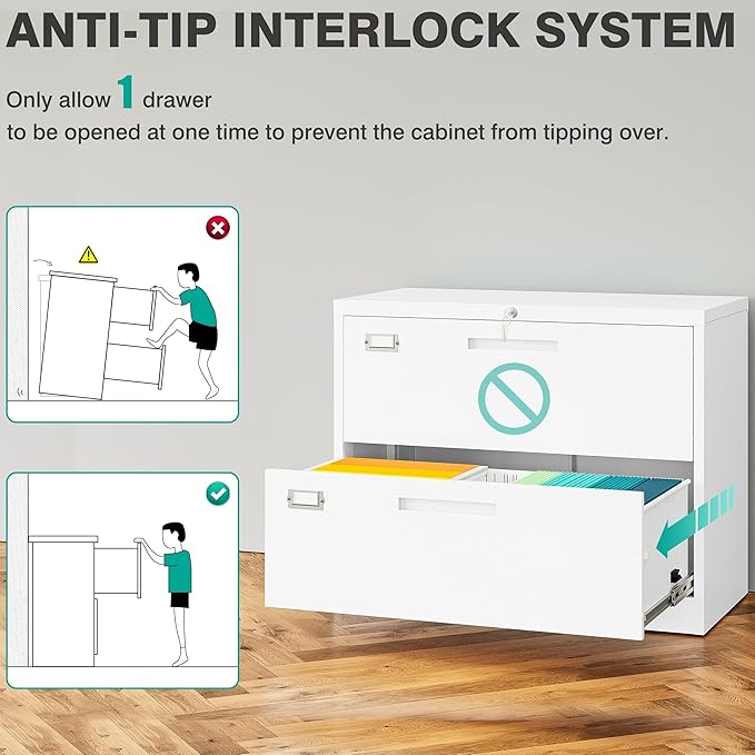 - 【Anti-tilt Mechanism】: All drawer interlocking mechanisms are designed to prevent tilting and ensure that only one drawer can be opened at a time; the file cabinet has 1 lock and 2 foldable keys to effectively protect your private documents and valuables. It is suitable for various scenes such as offices,home