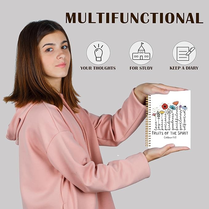 Qabliqo Fruit of the Spirit Christian Spiral Notebooks, Galatians 5:22 Bible Journals for Writing, Religious Scripture Journal for Women, Floral Bible Notebook for Note Taking, 5.5x8.3 Inch