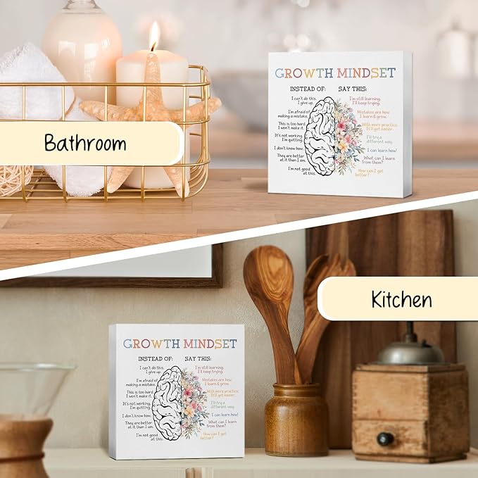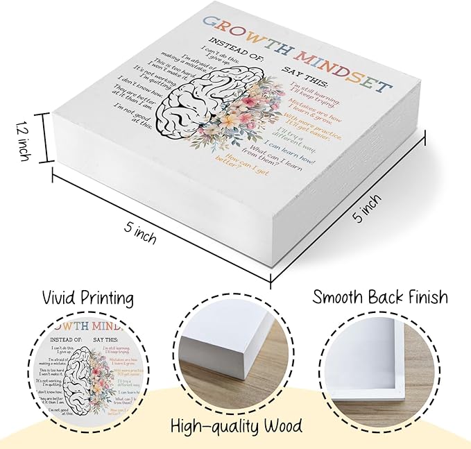 Mental Health Gifts Office Decor, Growth Mindset Therapist Office Motivational Desk Sign, Counseling Office Must Haves, Positive Affirmations Decorative Accessories Inspirational Tabletop Decor, psychologist gifts, 5x5 Inch