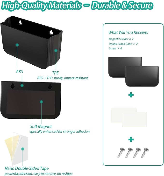 - High-Quality Materials – Durable & Secure: Made from ABS + TPE materials, this magnetic remote holder is sturdy, impact-resistant, and won’t break even if accidentally dropped. The soft magnetic backing has been specially enhanced for stronger adhesion. Paired with our tested nano double-sided tape, it maintains strong bonding power even in humid bathrooms or oily kitchen environments. Say goodbye to falling worries.