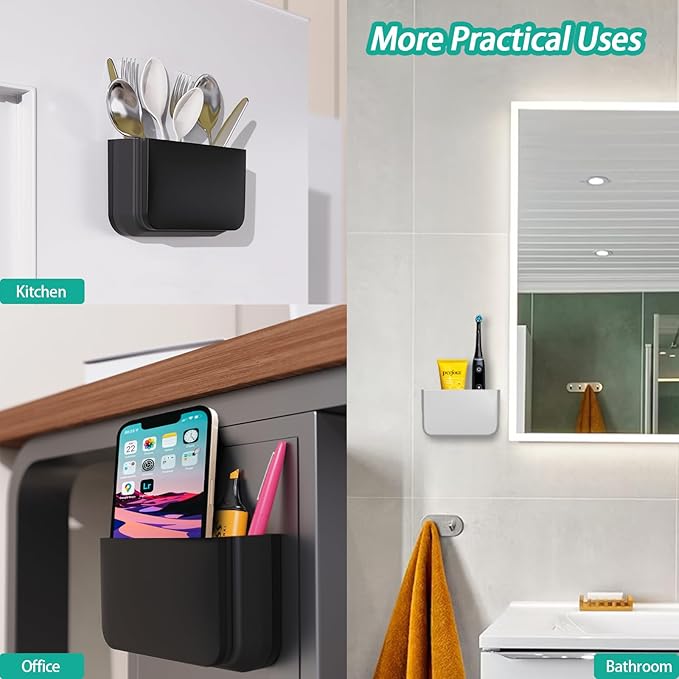 - This Multifunctional Magnetic Organizer Is Compatible with 5 Scenarios: Remote Controls, Stationery, Digital Devices, Kitchen Items, and Bathroom Essentials. ① As a remote control holder, it fits almost all types of remotes. ② As a stationery pen holder, it can hold whiteboard markers and erasers, as well as pens, pencils, dry erase markers, sticky notes, clips, staplers, and other stationery. ③ Easily stores small digital gadgets such as smartphones, chargers, cables, and earphones. ④ Keeps kitchen utensils like forks, knives, and spoons organized. ⑤ Ideal for storing bathroom essentials including toothbrushes, toothpaste, combs, hair accessories and more.