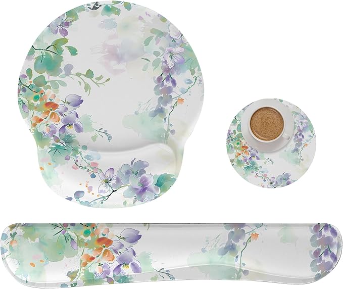 RICHEN 3 PCS Computer Mouse Pads for Desk with Coaster Set, Non-Slip Keyboard Wrist Rest and Mouse Pad Set, Ergonomic Design (YKMWR-50)