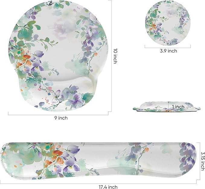 - 【Standard Size】The keyboard wrist support (44.5x8.5x2 cm/17.5*3.3*0.787 in) and the mouse pad with wrist rest (27x24.5x2 cm/ 10.62*9.64*0.787 in) fits most computers or notebooks or mouse, improve hand and wrist posture, avoid joint and wrist problems and release your elbows and shoulder stress for long hours of use on the computer.
