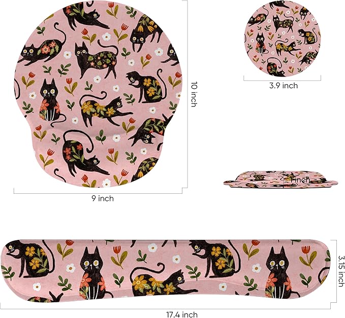 - 【Standard Size】The keyboard wrist support (44.5x8.5x2 cm/17.5*3.3*0.787 in) and the mouse pad with wrist rest (27x24.5x2 cm/ 10.62*9.64*0.787 in) fits most computers or notebooks or mouse, improve hand and wrist posture, avoid joint and wrist problems and release your elbows and shoulder stress for long hours of use on the computer.