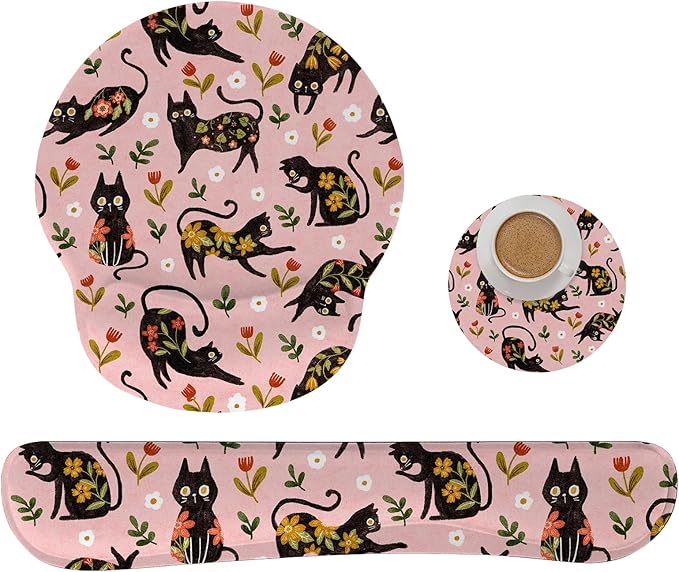 RICHEN 3 PCS Computer Mouse Pads for Desk with Coaster Set, Non-Slip Keyboard Wrist Rest and Mouse Pad Set, Ergonomic Design (YKMWR-51)