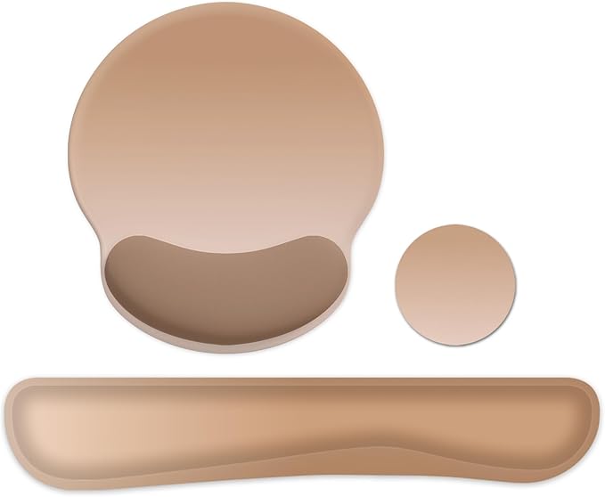 RICHEN 3 PCS Computer Mouse Pads for Desk with Coaster Set, Non-Slip Keyboard Wrist Rest and Mouse Pad Set, Ergonomic Design (Gradient Brown)