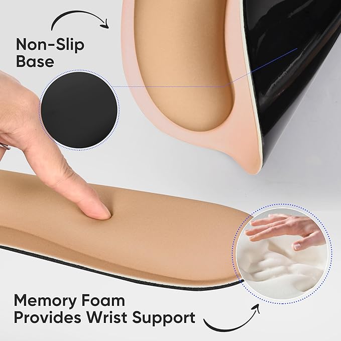 - 【Fatigue-free Typing Design】This keyboard wrist rest and mouse wrist rest pad set is contoured ergonomically to keep the wrist well supported for higher while working and gaming for long periods of time. Perfect wrist & hand fatigue reliever for workers, gamers, writers, editors who are engaged at long typing work.