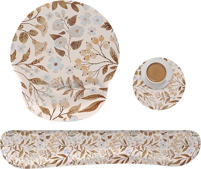 RICHEN Mouse Pad and Keyboard Wrist Rest, 3-in-1 Computer Mousepad and Coaster Set, Non-Slip Keyboard Wrist Rest and Mouse Pad Set Ergonomic Design (YKMWR-59)