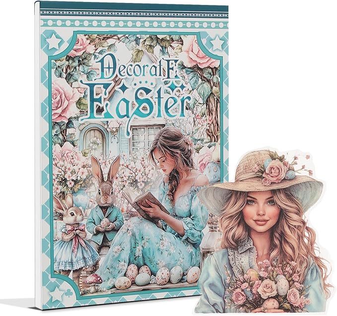 Snycler Easter Theme Sticker Scrapbooking Supplies for Junk Journal, 20 Sheets PET Stickers - Vintage Journaling Stickers, Ephemera Sticker Book Pre Cut, Planner, Junk Journal Supplies
