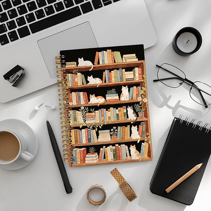 LIANHW Cat Bookshelf Notebook, Books Lover Gifts Notebooks for Note Taking, Reading Journals for Book Lovers, Cute Kitten Bookish Journals for Writing, Book Reader Gifts, 5.5x8.3 Inch