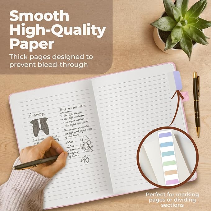 - THICK, SMOOTH, CREAM PAPER – NO BLEED, NO GHOSTING – Featuring 200 pages of high-quality thick paper, our smooth, off-white sheets let your pen glide effortlessly, with zero bleed-through—even with gel or fountain pens. Our college ruled notebook is ideal for long note-taking sessions, creative journaling, and meeting reflections.