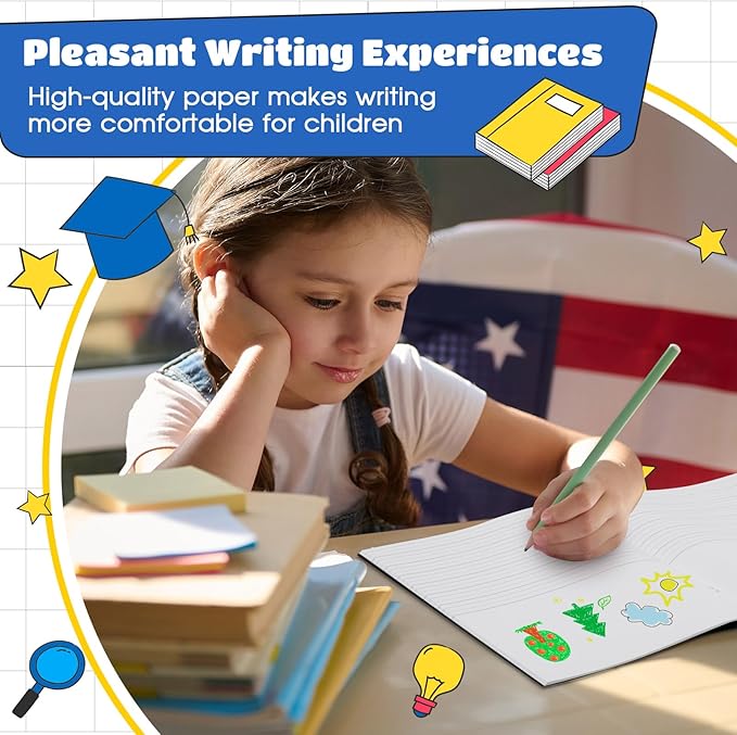 - Quality Paper Material: made of quality paper material, our primary notebook come with soft covers and thick white pages that are sturdy and tear resistant; This ensures long term usage and pleasant writing experiences, prioritizing safety and quality for both kids and students