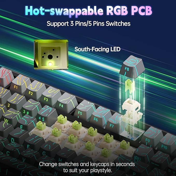 - Hot-Swappable Mechanical Keyboard: Keyboard enthusiasts rejoice! The premium hot-swap socket design allows effortless switch replacements without soldering. Experiment with different tactile feels or upgrade components to future-proof your investment